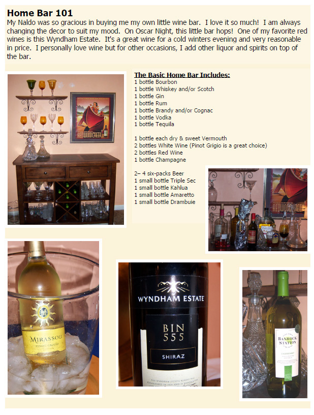 I have my own little wine space at home right now that I keep changing in design! I also have a great cabinet (not in the photo) that my friend Christina gave me that I use just for wine glasses and I love it, thanks Chris! This is my space…for now: