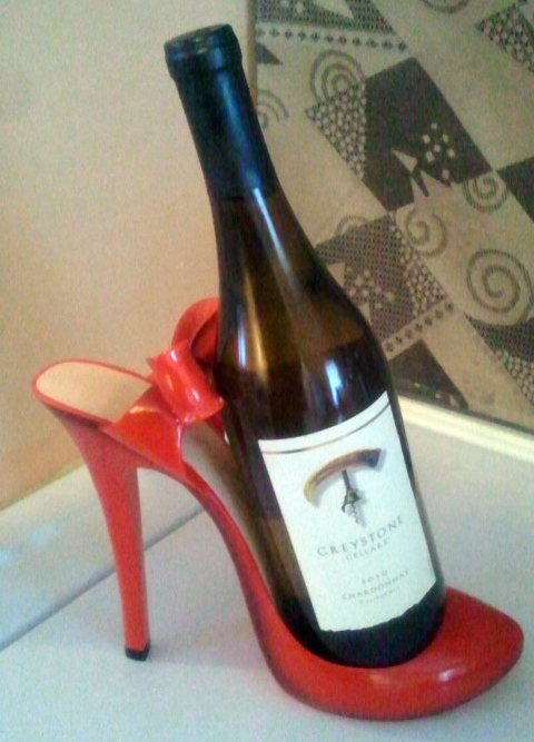 I’m going to leave you with wine hopes in the event you only have a counter top for your wine space. Look at this great wine gift my sister (nationally renowned Jazz Singer) Shawnn Monteiro gave me last week. A porcelain stiletto shoe wine holder that I simply adore and in my favorite color:
