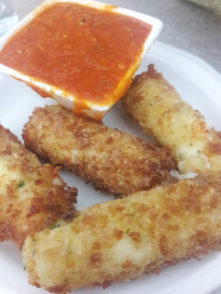 While I was frying, I did some mozzarella sticks in a shallow pan. They are my daughters all time favorite so I had to do some to shut her down. Simply get some string cheese mozzarella sticks and roll them in plain flour, then in egg, then in Italian breadcrumbs or Panko (I did Panko because I had it on hand, I just added seasonings). Place on a tray and freeze them for about 15- 20 minutes then fry in a shallow pan, turning frequently. Drain on a rack to keep crispy and serve with a marinara sauce. Quick and easy snack!