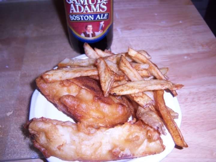 I normally do a traditional fish and chip batter but this week my Naldo had some Sam Adams from our Neice Beanie and I used one to make a batter for some fish and it was delish! Just simply, AP Flour and beer! Add some salt and pepper to taste to the batter (stir well and let sit for bout 5-6 minutes), dry flour the fish first then dip in the batter, fry and rest on a rack to drain excess oil. Enjoy with some homemade tartar sauce, ketchup and vinegar with homemade fries.