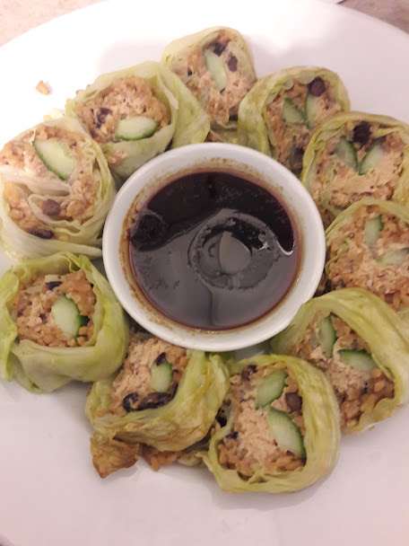 | Sushi Cabbage Rolls: Simply blanch large cabbage leaves in salted boiling water until tender, cool and set aside. I fill them with different things depending on what I want for lunch. Sometimes its tuna salad and black beans or rice and smoked salmon with cucumbers and torn nori seaweed. The sky is the limit! Roll them up and dip in soy, sesame oil and mirin. | Chicken Bacon Calzones: When I make my homemade pizza dough on Fridays, I keep some in the freezer for days my daughter makes these. If you don’t make dough, just buy store bought pizza dough. Roll out into small round discs and fill with cut up baked chicken breasts, cooked bacon, sprinkle with cheddar, add your tomato sauce or jarred if you like, then close up, egg wash, bake 425 degrees for 15 minutes. Serve with ranch dressing. | Fried Stuffed Olives: My favorite is garlic stuffed jumbo green olives. If you can’t find them already stuffed, just stuff slivered garlic in each one. Dry flour first. Dip into a batter of flour, baking powder, salt, water to make it like pancake batter, add a few drops of sesame oil that you mix well and let sit for 10 minutes. Fry in hot oil until golden and drain on a mesh rack. No need to salt. | Meatloaf & Mashed Potatoes: I suggest a food processor for this recipe. Put crustless sandwich bread pieces in and pulse to crumbs. remove to a bowl and add carrot, celery, garlic and onion, pulse to minced then add to bowl of breadcrumbs. Add ground beef and sweet Italian sausage to the bowl and add egg, ketchup, parsley, dry mustard, Badia Sazon Complete and salt & pepper. Mix just to combine. Form and bake 375 degrees about an hour and 15 minutes. |