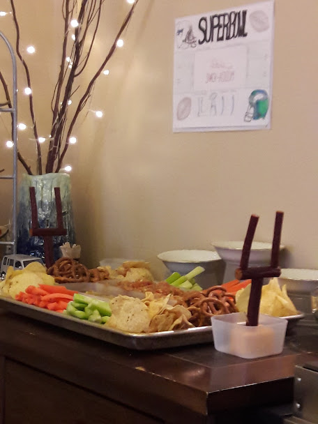 Of course, those were photos of a former Superbowl celebration of ours and not held here at The Stepping Stone, but the plan is the same. That’s usually our grazing table and all the open dishes are filled with dips and other stuff. The chili we just get from the stove when we are ready and the dinner, we have after the “itis” subsides. We might be able to sit at a table at dinner hour if our stomachs let us off the couch from in front of the TV.