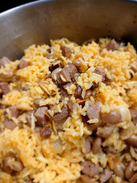 Cape Verdean Rice and Beans…we call it Jagacida or most commonly, Jag! It’s long grain rice, beans (usually kidney, pinto, lima or peas- I love pinto) that you soak overnight, or you can use from the can, I soak fresh beans overnight then cook for an hour the next day before adding to the rice recipe. You sauté onions and usually Portuguese Linguisa (I like kielbasa or beef sausage…don’t come for me, we all like what we like!), spices, add rice (rinsed or not, your choice), beans and Knorr broth. Cook for 24 minutes or so covered on simmer after bringing to a boil first. View slide show to the right.