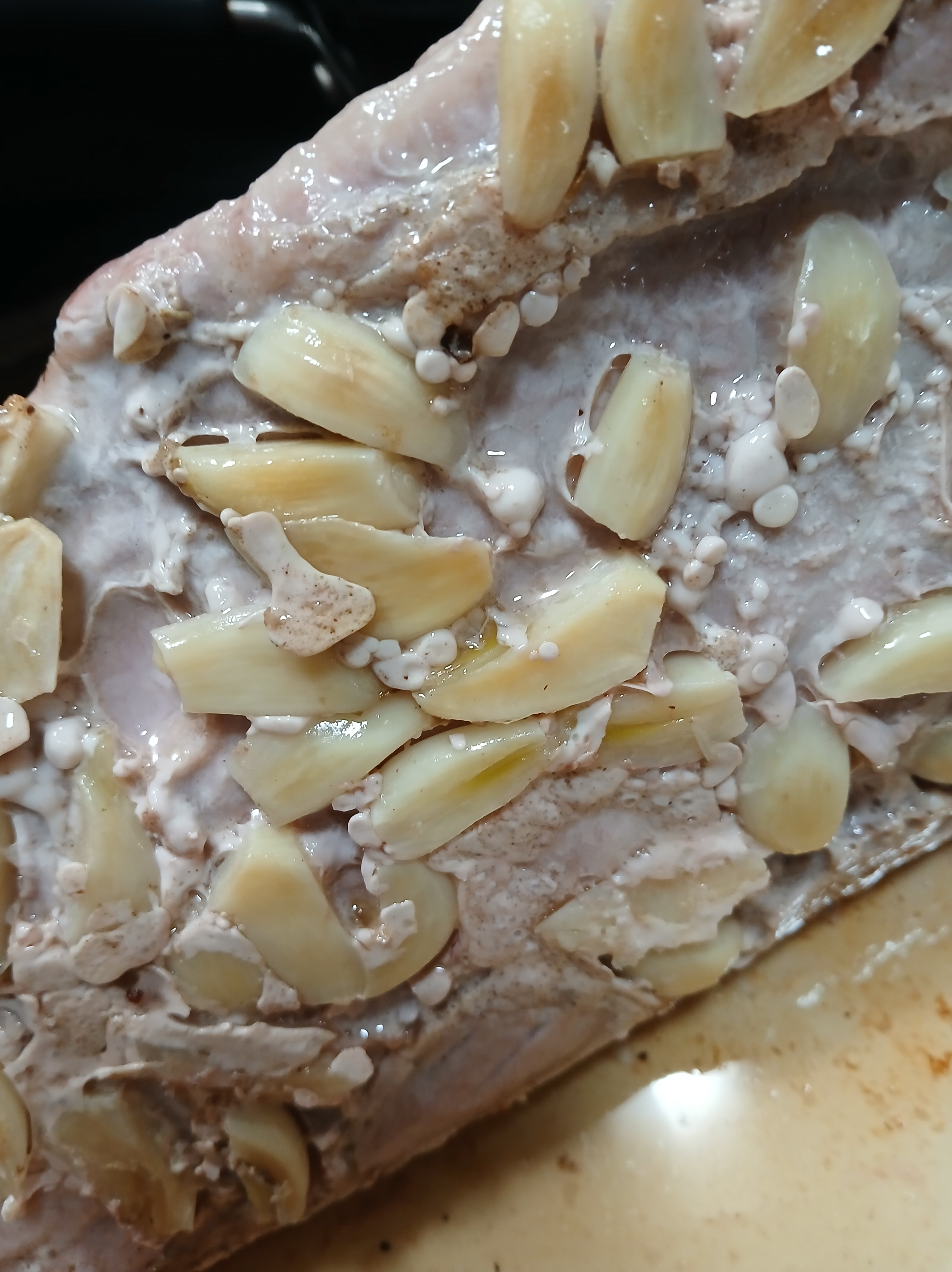 And of course, last Friday we heard of the impending snowstorm to come our way Sunday night into Monday. As you all may know, I love to hear there is a storm on the horizon as long as it is not dangerous. I am such a homebody and typical New Englander that I love to prepare with food, candles and libations. I did a slow roast pork loin with 40 cloves of garlic and a cream sauce and served it with mashed potatoes made with nutritional yeast that gives them a yummy cheesy flavor. I also boil my potatoes with garlic cloves as well. You think we like Garlic around here? Darn right! Served with a chilled Chardonnay or a robust Red, Josh is our favorite red. It’s so yummy. 1st photo below is the roast going in, with ground thyme, dried rosemary, Himalayan pink salt, cracked pepper, and 40 cloves of garlic underside. We were in such a hurry to eat, I forgot to photograph the roast out of the oven, rest assured it was delicious.