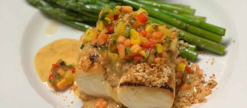 -Salmon- grilled with shrimp, spinach, crimini mushroom, orange beure blanc