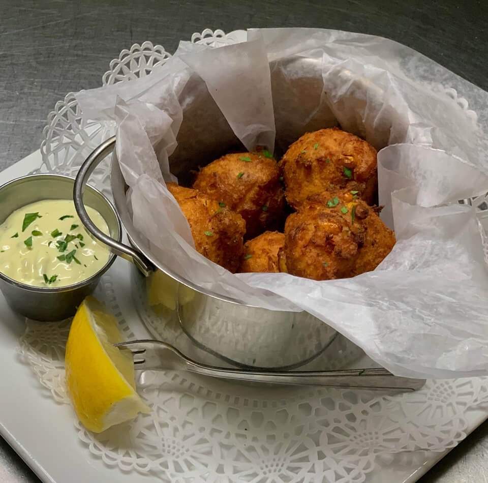 Chowder, Portuguese Style Stuffed Quahogs, Crispy Fried Calamari, Fried Mushrooms and Sauce
