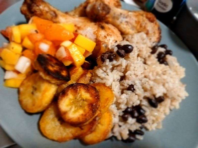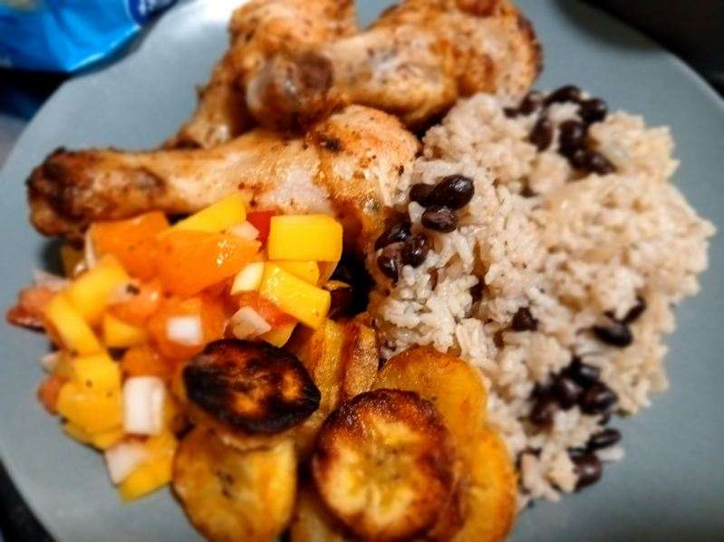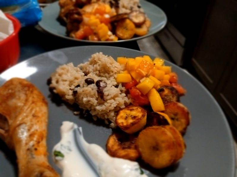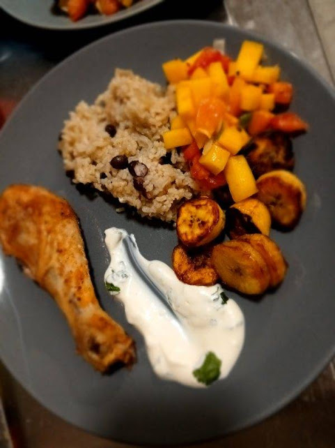She made the BEST dinner ever! It was an intoxicating blend of Tajin lime chicken drums with a fresh made Pico with mango and orange twist with a homemade crema style sauce unlike the traditional, so much better flavor! Served with black beans and rice with spicy seasonings. And I don’t care for fried plantains but let me tell YOU (and myself lol), these blew my mind and changed it! It was absolutely delicious! She took culinary in high school and it’s showing!