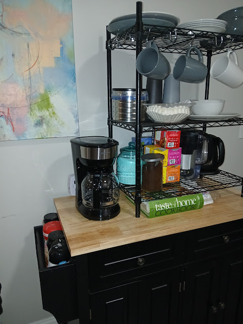 Welcome to another Coffee Cup Monday! I guess Spring is showing it’s face finally! I have to say it’s nice to open the windows and get some fresh air always. I started with my sink area. In the Stepping Stone, there are no kitchen wall cabinets, so I had to get creative with wall space to make things work for me. Thankfully I have a good size pantry.