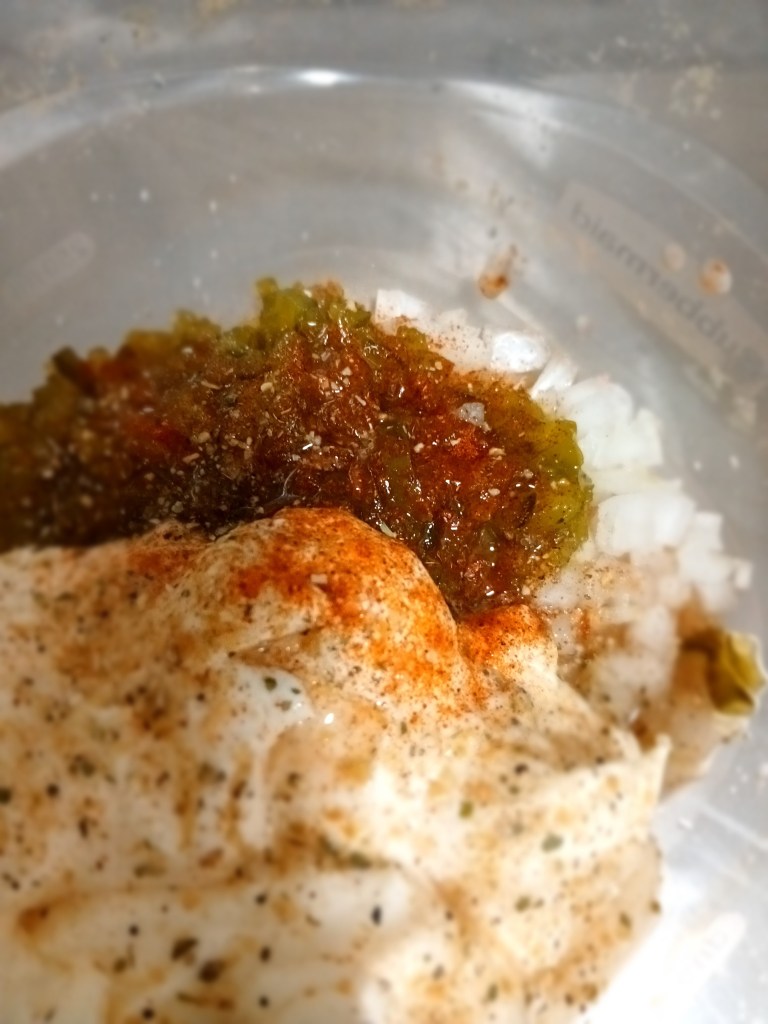 Simply add homemade mayo or Hellman’s with relish, salt and pepper, Badia, lemon juice, paprika and a splash of hot sauce. Mix it all, chill and serve with fish & chips. There is simply no need for that store bought stuff unless you find a good one you like. It’s so simple to make a child could do it. Add the seasonings you like. I also add garlic and onion powder for more flavor but leave it out if you want it plain and creamy. Instead of hot sauce, add diced jalapenos, yum!! The possibilities are endless.