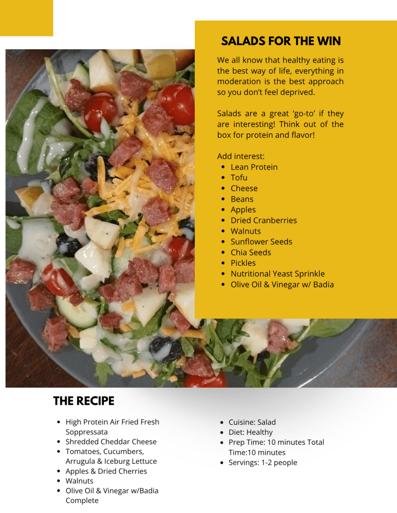When you make changes to get healthier, don’t do it all in one shot. Just change to having a healthy salad for lunch daily and a juice drink or smoothie each morning to start your day and a regular dinner. Spend your free time creating projects around the house or help a friend with theirs to keep your mind busy and your creative juices flowing.