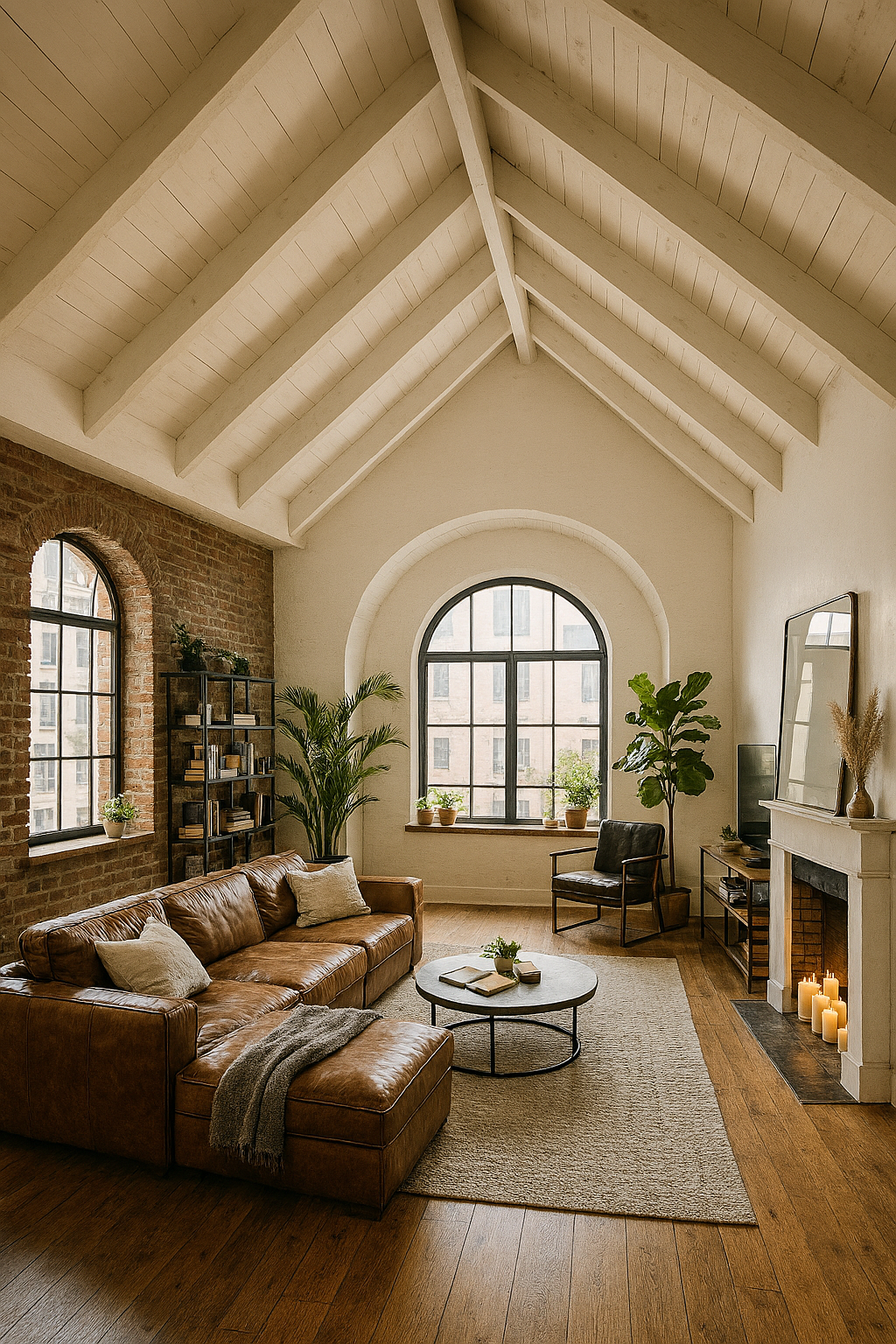 I don’t think I will be able to get my electric fireplace this winter with all my other projects in the works, but I am determined to find a mantle and fix it up and fill it with the new battery-operated candles to quench my ‘winter fireplace’ thirst. I am also in the process of looking for a new sectional for our living room area and these photos I asked AI to conjure up are exactly what was in my mind’s eye. I can’t wait to create something most similar to these soon.