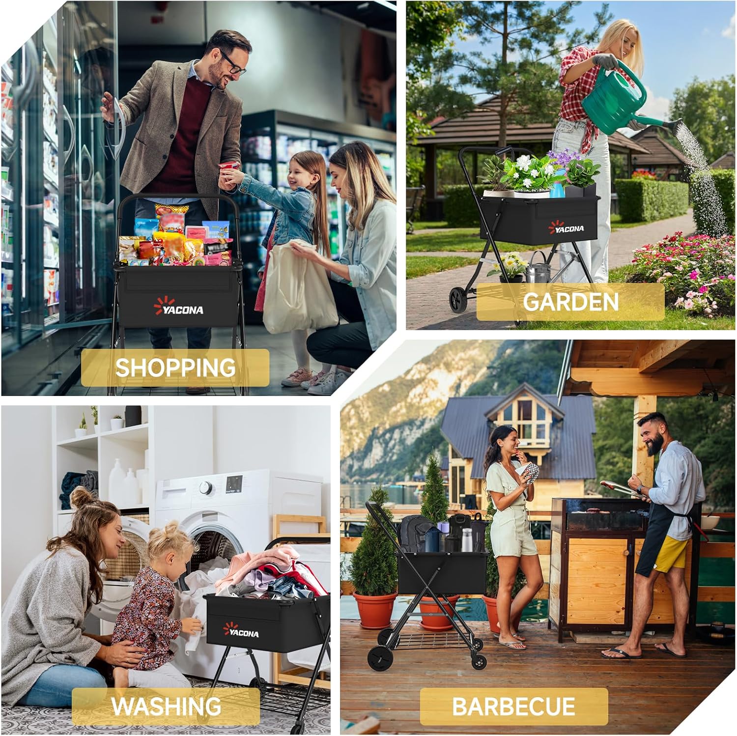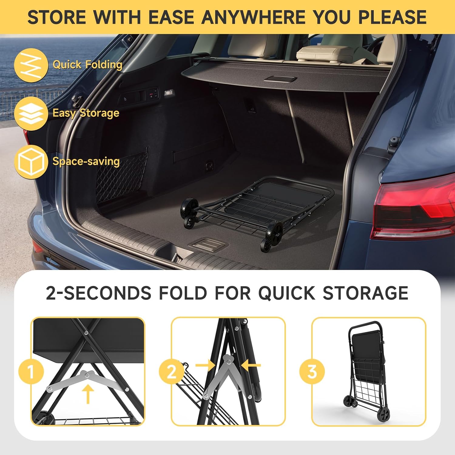 Amazon Basics Foldable Shopping Utility Cart with 360-Degree Wheels, Easy Assembly, Black, X-Large.
