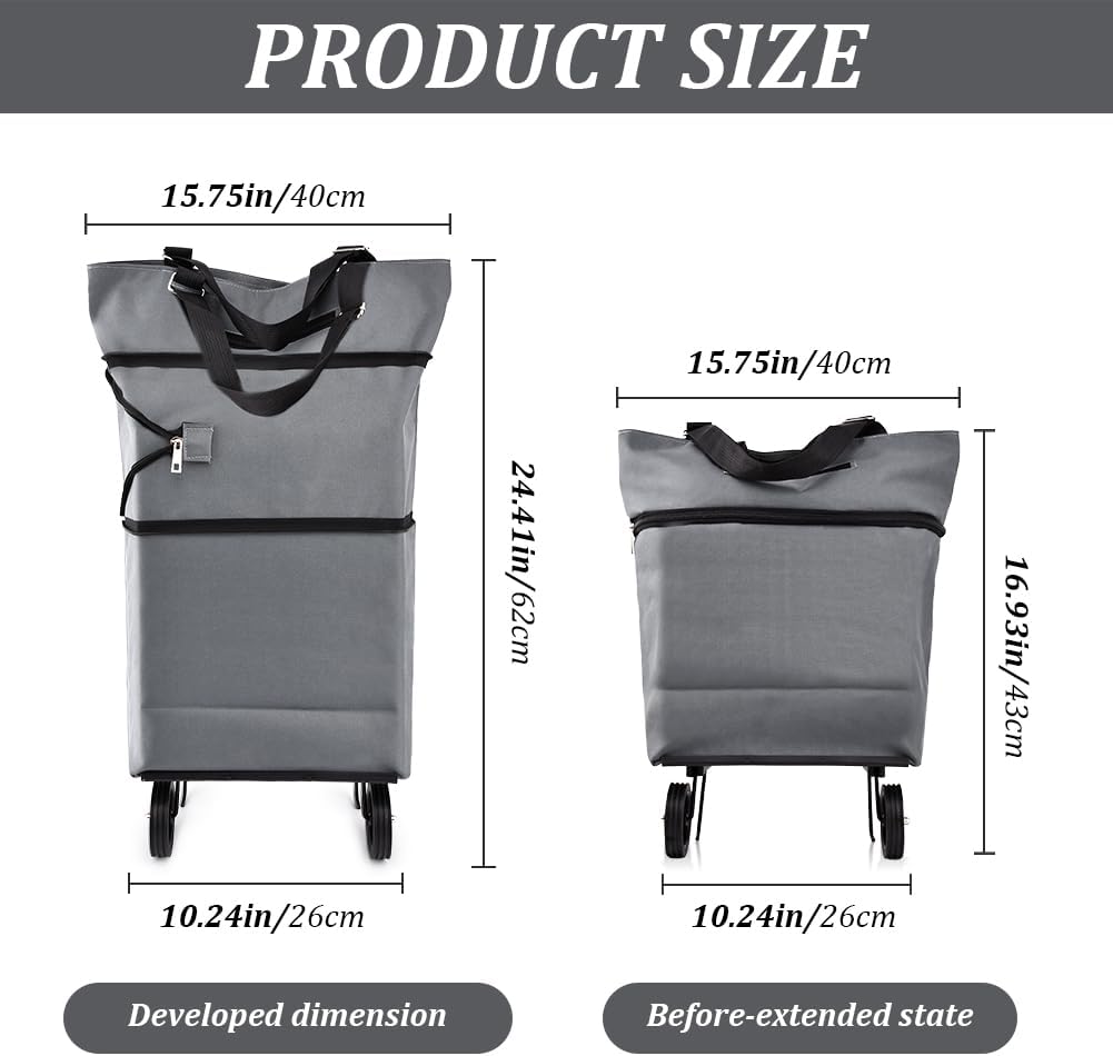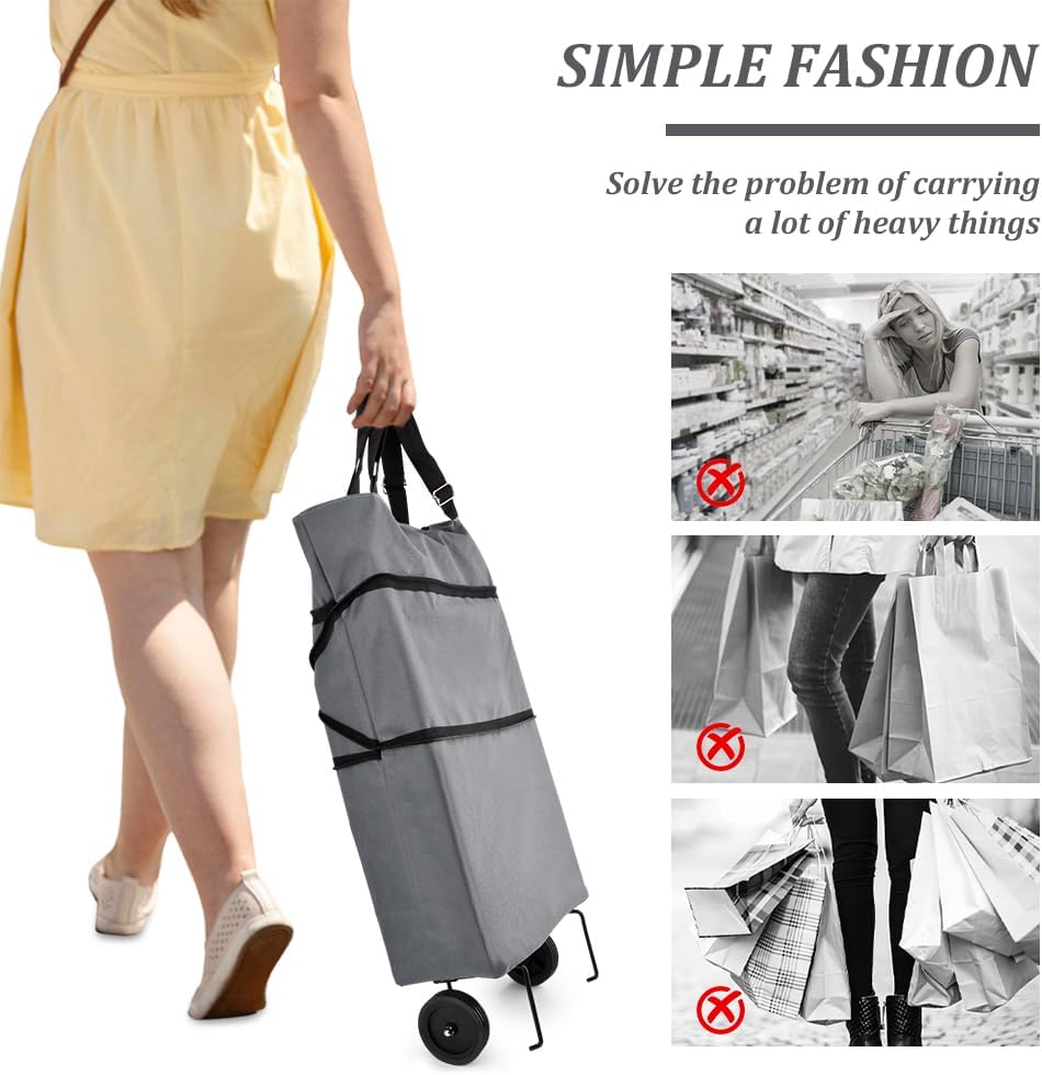 JIANWEI Collapsible Shopping Cart with 360° Swivel Wheels, Portable Folding Trolle-y Grocery Bag, Reusable Foldable Tote Grocery Cart Large Capacity Used for Travel and Home (Grey & Lake Blue)